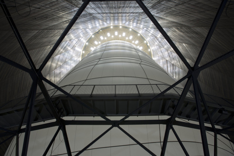 Der Blick im Inneren des Gasometers in Richtung Dach. Foto: Volz